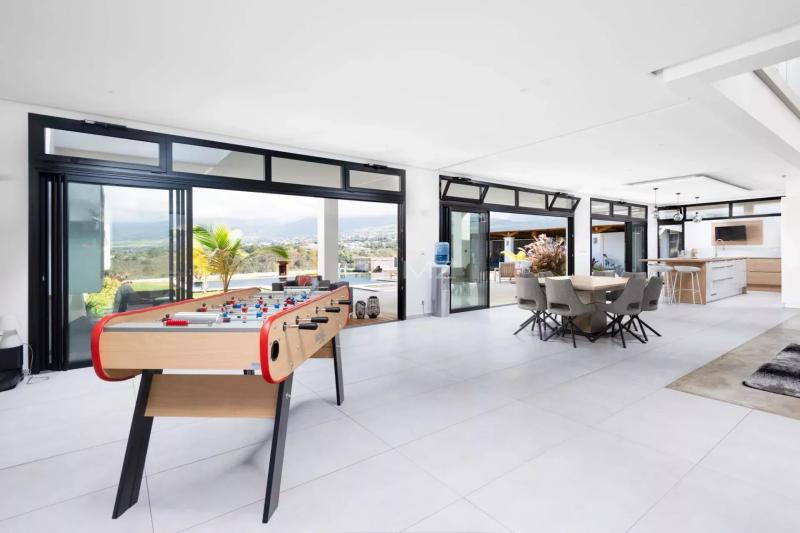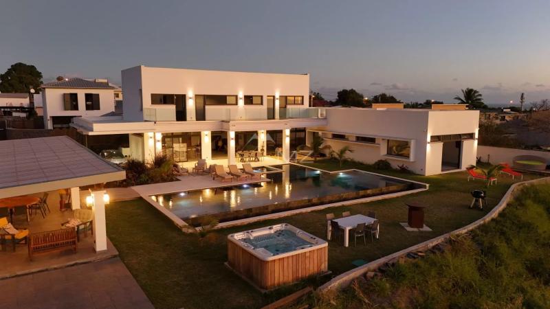 Außergewöhnliches Anwesen mit Hauptvilla und drei Mietvillen, gelegen in Ravine des Cabris (Stadtteil Saint-Pierre) Dieses Anwesen befindet sich am Ende einer Sackgasse, in der Nähe von Schulen, Geschäften und der Hauptstraße, und erstreckt sich über eine Fläche von etwa 3.099 m². Es umfasst eine 600 m² große Hauptvilla und drei unabhängige Mietvillen von je 150 m². Hauptvilla von 600 m² Am Eingang befindet sich ein Ehrenhof, der es Ihnen ermöglicht, Ihre Gäste stilvoll und mühelos im Anwesen zu empfangen. Das Erdgeschoss öffnet sich zu einem großzügigen Wohnzimmer mit einer voll ausgestatteten Küche und einem zentralen Kochblock, ideal für gesellige Momente, die auf eine Veranda mit 180°-Blick auf die Berge führt. Das große Wohnzimmer führt zu einem Hauptschlafzimmer mit begehbarem Kleiderschrank, einer Speisekammer und zwei separaten WCs, die diese Ebene vervollständigen. Im Obergeschoss befinden sich drei elegante Elternsuiten, die jeweils Zugang zu einer 167 m² großen Dachterrasse bieten, die sich perfekt eignet, um die beeindruckende Aussicht auf die Berge und den Ozean zu genießen. Ein zweiter Balkon, der zur Straßenseite hin liegt, ergänzt dieses Stockwerk. Das Untergeschoss umfasst ein Fitnessstudio, einen Wellnessbereich, eine Garage für zwei Fahrzeuge, einen Waschraum und einen Bereich, der für einen Weinkeller vorgesehen ist. Draußen befindet sich ein Entspannungsbereich mit Infinity-Pool, zwei Jacuzzis und einem großen Poolhaus für unvergessliche Stunden im Freien. Drei Mietvillen von je 150 m² mit privatem Pool Jede der drei 150 m² großen Mietvillen ist so konzipiert, dass sie Komfort und Privatsphäre bietet. Sie umfassen eine Elternsuite mit Veranda im Erdgeschoss, ein großzügiges Wohnzimmer, eine offene Küche und zwei zusätzliche Schlafzimmer im Obergeschoss. Jede Villa verfügt über einen eigenen privaten Pool, der den Mietern völlige Ruhe garantiert. Dieses einzigartige Anwesen bietet die perfekte Kombination aus einer prestigeträchtigen Hauptresidenz und Mietrendite-Möglichkeiten mit autonomen Villen, die jeweils so gestaltet sind, dass sie Privatsphäre und Komfort gewährleisten.Informationsanfrage