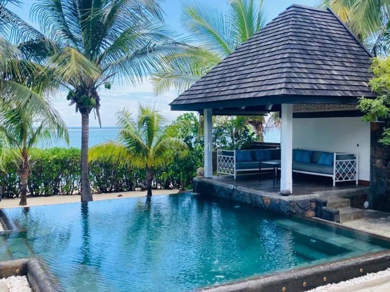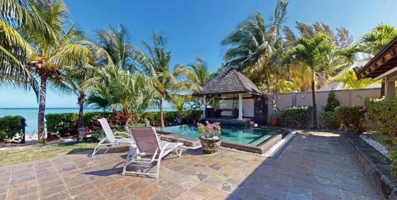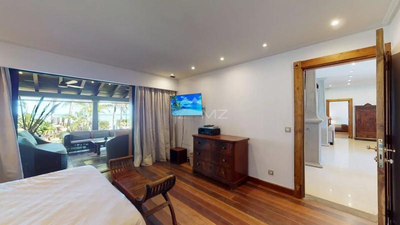 THE VILLA MATAHARI IS A JEWEL SET ON THE SUBLIME BEACH OF LA PRENEUSE IN THE BLACK RIVER PRESENTATION : This sumptuous 3 bedroom en-suite villa with its independent beachfront apartment is the epitome of luxury for your next holiday in Mauritius. Located on the most pristine beach on the west coast, La Preneuse, this architect-designed villa, fully air-conditioned, offers everything you were looking for. Private infinity pool overlooking the lagoon, hammam, massage table, 4 covered parking spaces, 3 kitchens, etc. All overlooking the magnificent view of the white sand beach and the turquoise lagoon of La Preneuse. The villa is fully air-conditioned and serviced Decorated with high-end designer furniture, quality materials, such as teak wood, engraved synthetic wood, canvas, hand-carving stones and much more. You will be surprised by the level of detail that makes this villa a unique and luxurious haven of peace. Main villa annex apartment for 8 people: Main villa with 8 rooms, including 3 air-conditioned bedrooms, 3 bathrooms, 4 toilets, office with extra bed, independent kitchen, dining room, living room, terrace, kiosk, infinity pool Its annex apartment called "Guest House" consists of access to the car park, a private and intimate garden, a veranda, a large living room, a bathroom, a large bedroom with the floor under a wooden frame with a bodyguard. Ideal for a couple who wants to be apart or for staffRequest for information