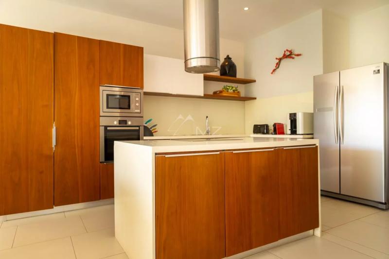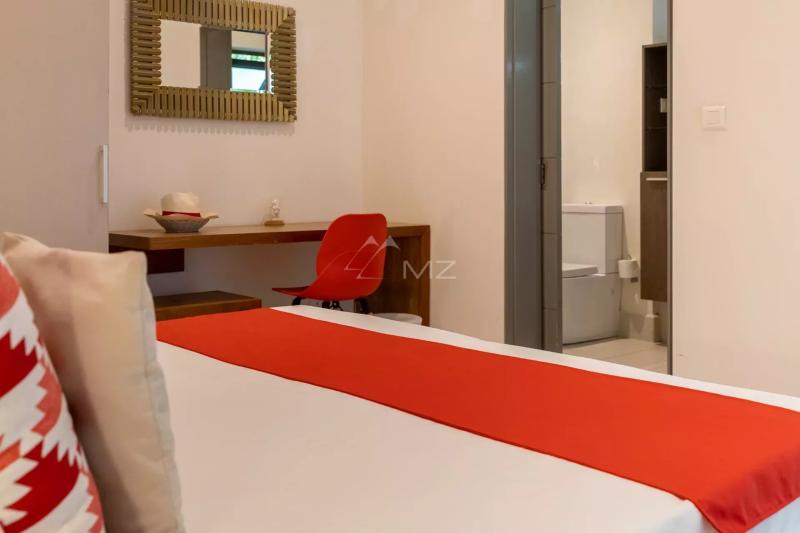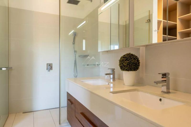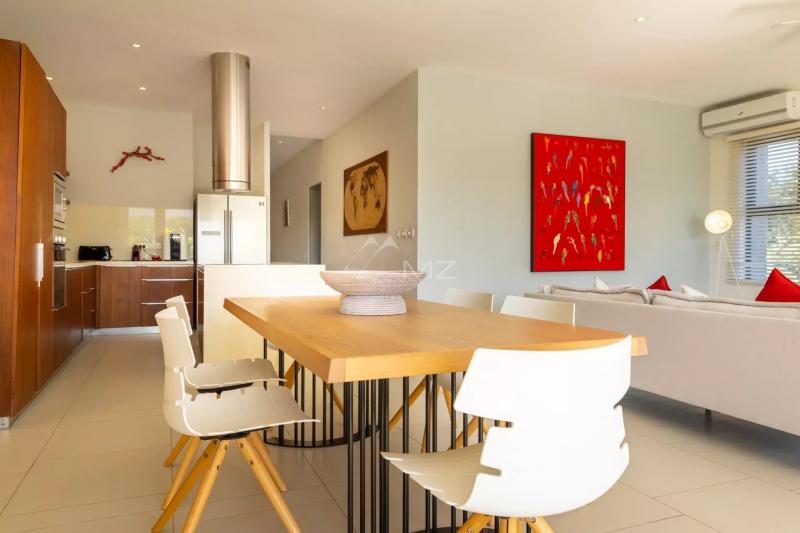This superb apartment with an area of 200 m2 is located on the first floor of this residence by the sea, and is accessible to foreigners. It consists of 3 en-suite bedrooms. The spacious living room and dining room open onto the outside through huge bay windows overlooking a terrace, where you can relax while admiring the magnificent view of the sea and the mountains. The American kitchen with state-of-the-art equipment (refrigerator, oven, etc.) will allow you to prepare delicious meals. The en-suite master bedroom is equipped with a dressing room as well as a bathroom with a bathtub to relax. The other 2 bedrooms also have their own bathroom. This modern design apartment offers you great comfort in a trendy atmosphere and a "tropical-chic" setting.Request for information