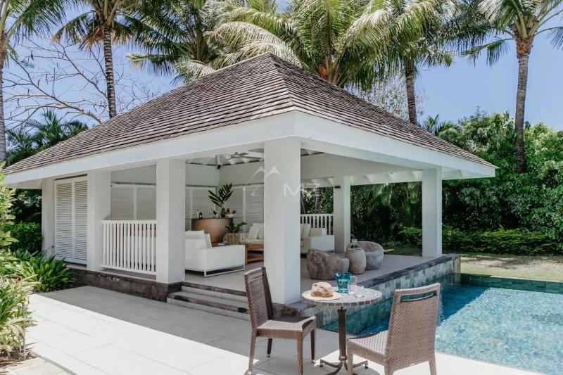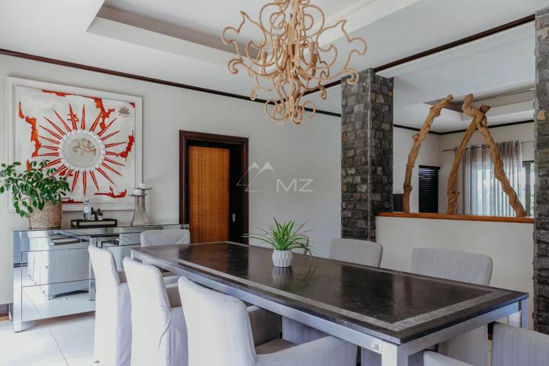 This superb 550m2 villa built on two levels offers a luxurious, spacious, and totally intimate living environment with a beautiful landscaped garden of 1,972m2. Located in the prestigious residential area of Lunea, it is ideally situated just a 3-minute walk from all the amenities of the resort and the golf club house. The villa consists of 4 large bedrooms, each equipped with bathrooms and dressing rooms, as well as an annex offering 2 additional bedrooms for optimal comfort. The "master" bedroom located upstairs offers direct access to a wooden decking terrace with a view of the nearby lagoon and ocean. The villa's living room and dining room open onto the landscaped garden and large natural stone swimming pool, creating a bright and spacious living space that is perfect for relaxing and socializing. The outdoor kiosk, bordering the pool, is an ideal place to entertain or simply relax with family or friends. This exceptional villa is an ideal choice for those seeking to live in a luxurious and exclusive living environment in Mauritius. As a resident of the Lunea villa, you will also have access to all the amenities and services offered by the Anahita estate, including a world-class golf course, a spa, restaurants, tennis courts, and much more.Request for information