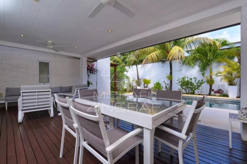 Discover this exceptional villa located in Grand Bay, within a high-end residential complex. The 441 m² plot is fully fenced, ensuring privacy and security. The location is ideal, offering easy access to the city center and the sea while maintaining a peaceful and exclusive setting. Highlights: Elegant and contemporary architecture with large openings providing stunning views of the garden. Perfectly suited to the tropical climate and sunny days of the northern coast, offering optimal comfort. Features: Single-story villa with 3 bedrooms, each with its own en-suite bathroom. Large terrace, pool, and gazebo to fully enjoy the tropical climate. The site enjoys a prime location, providing residents with easy access to all city center amenities. On-site boat parking is available, perfect for those looking to explore the Mauritian lagoons. Exclusive Benefits for Owners: Private access to the "Evaco Beach Club," an exclusive beach. VIP rates and privileged access to the restaurant and spa at Domaine des Alizées. Exclusive services for boat acquisition, parking, hauling, and maintenance in Grand Bay. This prestigious residence is perfect for a primary home, a secondary residence, or a profitable real estate investment. Enjoy an exceptional quality of life in one of the most sought-after areas of the island.Request for information