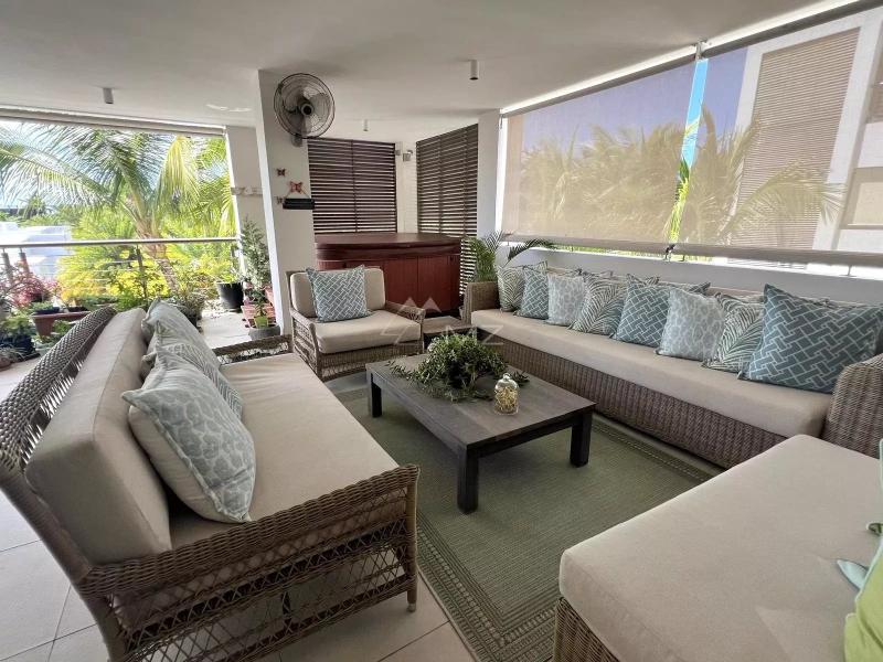Your Luxury Hideaway with Private Beach Access and Exceptional Services Discover unrivalled luxury living in this superb penthouse, ideally located with direct access to a private beach. This exclusive location oBers the ultimate seaside living experience. Spanning an impressive 400m2, with 197m2 of carefully designed interior space and 203m2 of outdoor space, this residence combines contemporary elegance with absolute comfort. Step into a home that exudes sophistication. The property boasts three spacious bedrooms, each with its own en- suite bathroom, ensuring total privacy. The suite is a true sanctuary, with an open plan design, generous storage and a soothing ambience. A guest toilet adds extra convenience for entertaining. The open-plan living space, including the lounge, dining room and kitchen, is perfect for entertaining or relaxing, with air conditioning in every room for optimum comfort all year round. The outdoor spaces redefine relaxation. The main terrace has a private Jacuzzi, complete with adjustable blinds for maximum privacy. Climb the private staircase to the roof terrace, where a salt- heated pool awaits you, along with a daybed to enjoy the sun or the stars. These areas are designed for entertaining with ease, including a bar and worktop made from weather-resistant materials, as well as retractable awnings and shade nets to suit any occasion. This residence is equipped with all modern conveniences. Most of the upstairs and outdoor furniture is included, making the property ready to live in. Enjoy separate Wi- Fi access upstairs, European sockets, a wine cellar on the ground floor and a drinks fridge upstairs. Air conditioning in all bedrooms and living areas ensures a perfect temperature in all seasons. - Two covered parking spaces. - Storage space included near the lift lift for easy access. - Additional ground floor storage available for purchase for $15,000. Located just steps from the sand, this residence has direct access to a private beach, perfect for peaceful strolls or relaxing by the water. This extraordinary penthouse is much more than a house, it's a way of life. Every detail has been carefully designed to provide an unparalleled experience of luxury, comfort and coastal beauty. Don't miss this rare opportunity to make this exceptional place your new home!Request for information