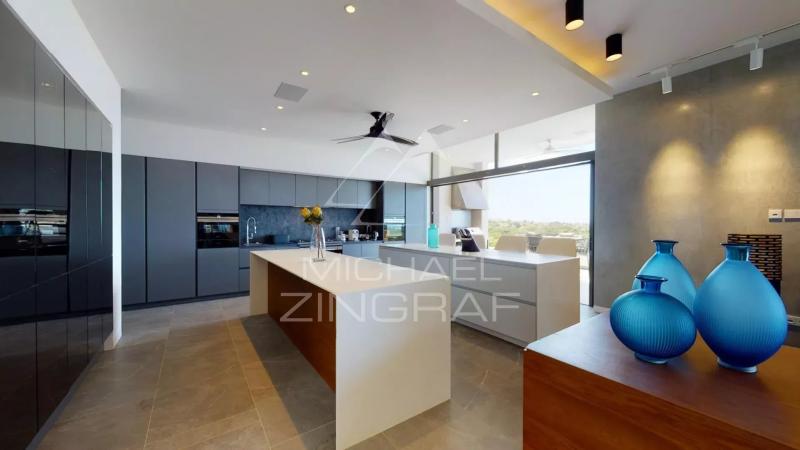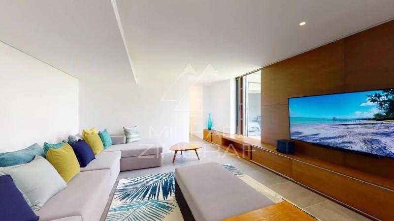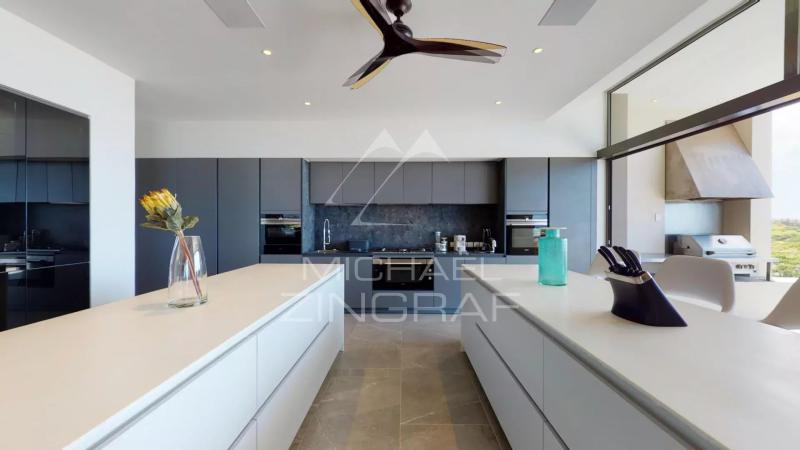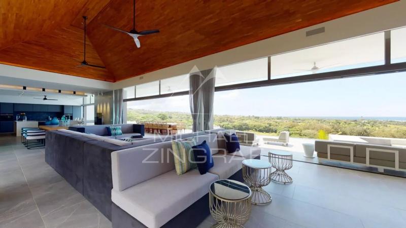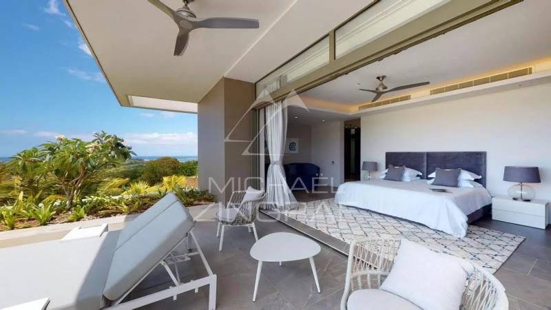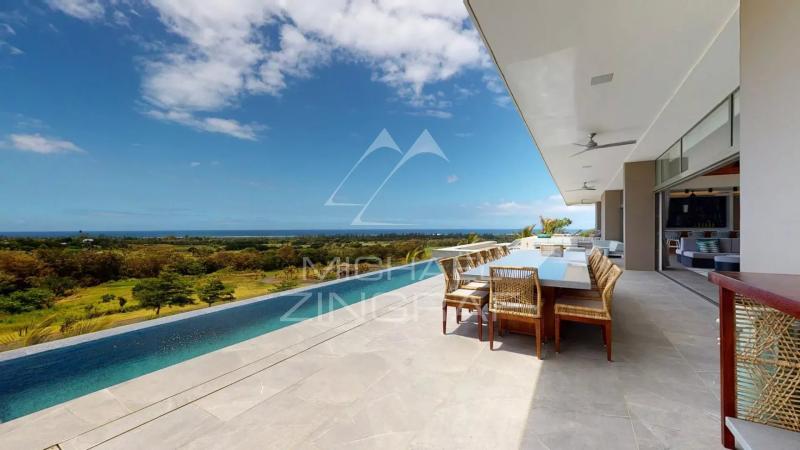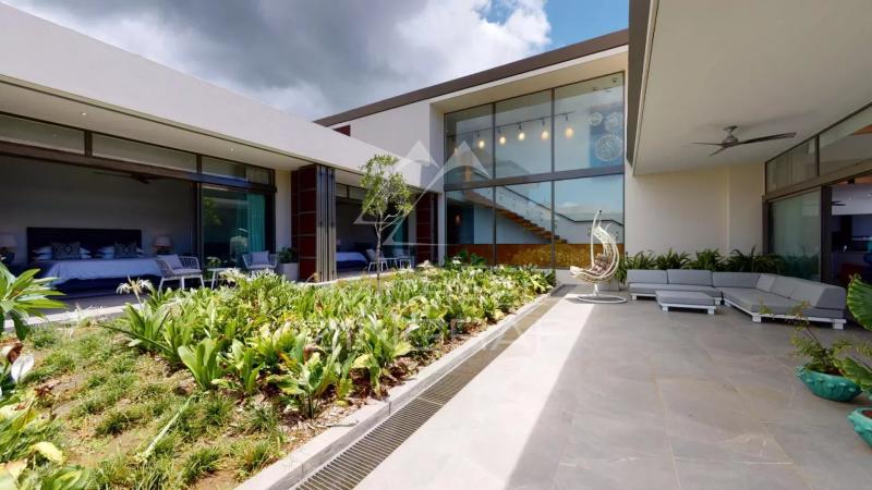 Discover this sumptuous contemporary villa with a 696 m² living area, offering a breathtaking panoramic view of the ocean. Located in a secure estate in Bel Ombre, on the southwest coast of Mauritius, this tastefully furnished property provides a luxurious living environment surrounded by nature, between the sea and the mountains. The villa features 5 spacious bedrooms, all en-suite, ensuring privacy and comfort for its residents. The ground floor boasts a vast, light-filled living space, with high ceilings and large glass doors. It includes a guest bedroom, a fully equipped open-plan kitchen, a living and dining area, and a stylish bar, perfect for entertaining. The living area opens onto a magnificent terrace with an infinity pool, offering a spectacular ocean view. On the other side, a beautifully landscaped tropical patio creates a serene relaxation space. The ground floor also includes three additional en-suite bedrooms, an office, a TV room, and the master suite. The master suite benefits from a private terrace with stunning sea views, a walk-in closet, and an en-suite bathroom with indoor and outdoor showers. The villa also features a garage, 24/7 security services, and direct access to the sea. High-end finishes and premium materials add a touch of elegance to every detail, making this villa a truly unique residence. As a homeowner, you will enjoy exclusive access to the luxury amenities of two nearby 5-star hotels, including fine dining restaurants, a spa, a beach club, and two golf courses.Request for information