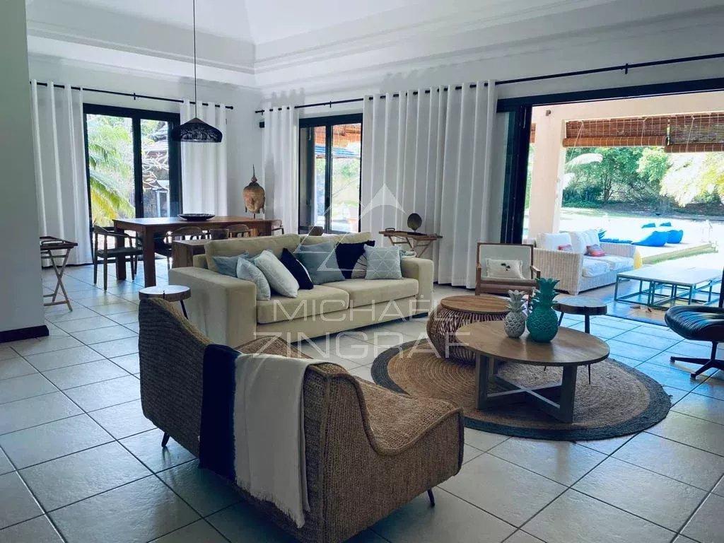 Exceptional villa for sale in the heart of Tamarina Golf Estate & Beach Club. Set on a vast plot of 3,255 m², this elegant 491 m² villa (with an additional 76 m² wooden deck around the pool) combines modernity, comfort, and refinement. Fully renovated in a contemporary style, it impresses with its brightness and generous spaces. Highlights of the villa: 4 spacious and elegant en-suite bedrooms Bright living room opening onto the outdoors Large swimming pool with kiosk and relaxation area at the back of the garden Garage for 2 cars + golf cart included Landscaped garden ensuring privacy An exclusive lifestyle: As a homeowner, you will enjoy a golf club membership and will be eligible to obtain a permanent residence permit in Mauritius. A world-class golf course: Designed by Rodney Wright, the 18-hole, Par-72 Tamarina Golf Course stretches over 6,780 meters between majestic mountains and ocean views. With its carefully designed fairways and spectacular scenery, it ranks among the most beautiful courses on the island. Private Beach Club: Facing the iconic Tamarin Beach, the Tamarina Beach Club is the perfect place to relax, enjoy a casual lunch by the sea, or savor a refined dinner in a chic yet laid-back tropical atmosphere. This villa is more than just a residence – it is a unique lifestyle experience, blending luxury, nature, and the Mauritian art of living.Request for information
