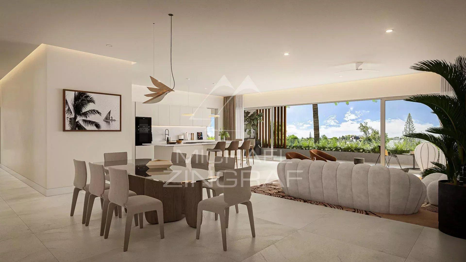 Nestled in the idyllic setting of Grand Bay, Royal Merville stands as a lighthouse in the exclusive world of luxury residential apartments. Ideal for investment, a first purchase, or a second home with the possibility of seasonal rental, it opens the door to a new adventure. The perfect place for waterfront living, Royal Merville benefits from its proximity to the beaches and shops of Grand Bay, Trou Aux Biches, Péreybère, Mont Choisy, and La Cuvette. You will also enjoy the exclusive experiences of 5-star hotels, such as LUX* Grand Bay. AT THE HEART OF SEASIDE LIVING A total immersion in the life of the northern coastline, in contact with its inhabitants, greenery, and sea breezes with salty scents. REFINEMENT, TRADITION, LUXURY Like an ode to local well-being, the architecture of Royal Merville reflects both noble elements and timelessness. NEUTRAL TONES FOR TOTAL CALM Dominated by white and ivory, the dining room has been crafted by artisans who value practicality and elegance in the service of fine dining. MAGNIFICENCE AND INGENUITY An elegant kitchen by Veneta, represented by Casamoi, is equipped with all the essentials that make it the centrepiece of shared moments. From family breakfasts to royal feasts prepared for friends and loved ones, it comes alive under the expert hands of its in-house chefs. CONTEMPORARY ELEGANCE WITH A SEA VIEW A visual harmony greets your eyes as you traverse the living spaces, merging the dining room, living room, and kitchen with the terrace embracing the sea view. Furniture by Rochebobois and an elegant kitchen by Veneta, represented by Casamoi, complete this contemporary scene. BETWEEN WORK AND LEISURE An exemplary multi-use room, it includes a work area and a TV space. Its minimalist and practical furniture makes it a choice space for young and old alike. SPACIOUSNESS AND THE ART OF LUXURY Enjoy delightful moments of conviviality and shared pauses in privacy. The living spaces adapt to the rhythm of your social and family calendar. SLEEP IS GOLDEN AND THE VIEW IS AZURE... The master suite will become your haven of serenity with its refined and elegant decor, designed by the best artisans. A place where dreams and rest are endless. AN OASIS TO DISCOVER IN THIS NEW SPACE Your secondary space becomes a haven of tranquility where productivity meets rest. Designed by Ad Nova Ltd with Rochebobois furniture, its sophisticated and elegant decor envelops you in a cocoon of serenity... EXPERIENCE THE NORTH A thoughtfully designed terrace invites the eye to wander over the turquoise waters of the North. The pleasures of a life where outdoor spaces are enjoyed with family or friends... LIVE, BREATHE, FLOURISH... The penthouse living room showcases ultra-modern and refined decor. Each piece of furniture is the designer’s realisation of combining aesthetics with comfort, while allowing the sea breeze to slip in through the large bay windows. A SIMPLIFIED LIFE Thanks to the careful layout and the expertise of Rochebobois and Casamoi, the living spaces blend and intertwine to give fortunate residents the feeling of floating effortlessly in an uncomplicated existence. MAGNIFICENCE AND INGENUITY An elegant kitchen by Veneta, represented by Casamoi, is adorned with all the elements that make it the beating heart of daily life. From peaceful breakfasts to gala dinners, it unfolds under the watchful eye of its master artisans. THE SKY AWAITS Imagine moments of ultimate serenity, immersed in your bathtub, with the blue sky or the stars tenderly peeking in... Did someone say bliss? REST, DREAM, IMMERSE... The master bedroom of the penthouse reveals itself as a sanctuary of tranquility and elegance. Soothing tones and carefully selected furniture create an atmosphere of understated luxury. The large sliding door opens onto a terrace offering a stunning sea view, inviting natural elements to enrich every moment of relaxation. TRAIN, ADMIRE, INSPIRE To make your moments of exertion as pleasant as the comfort that follows, the fitness room is equipped with ultra-modern gear. All that's left is for you to enjoy it...Request for information