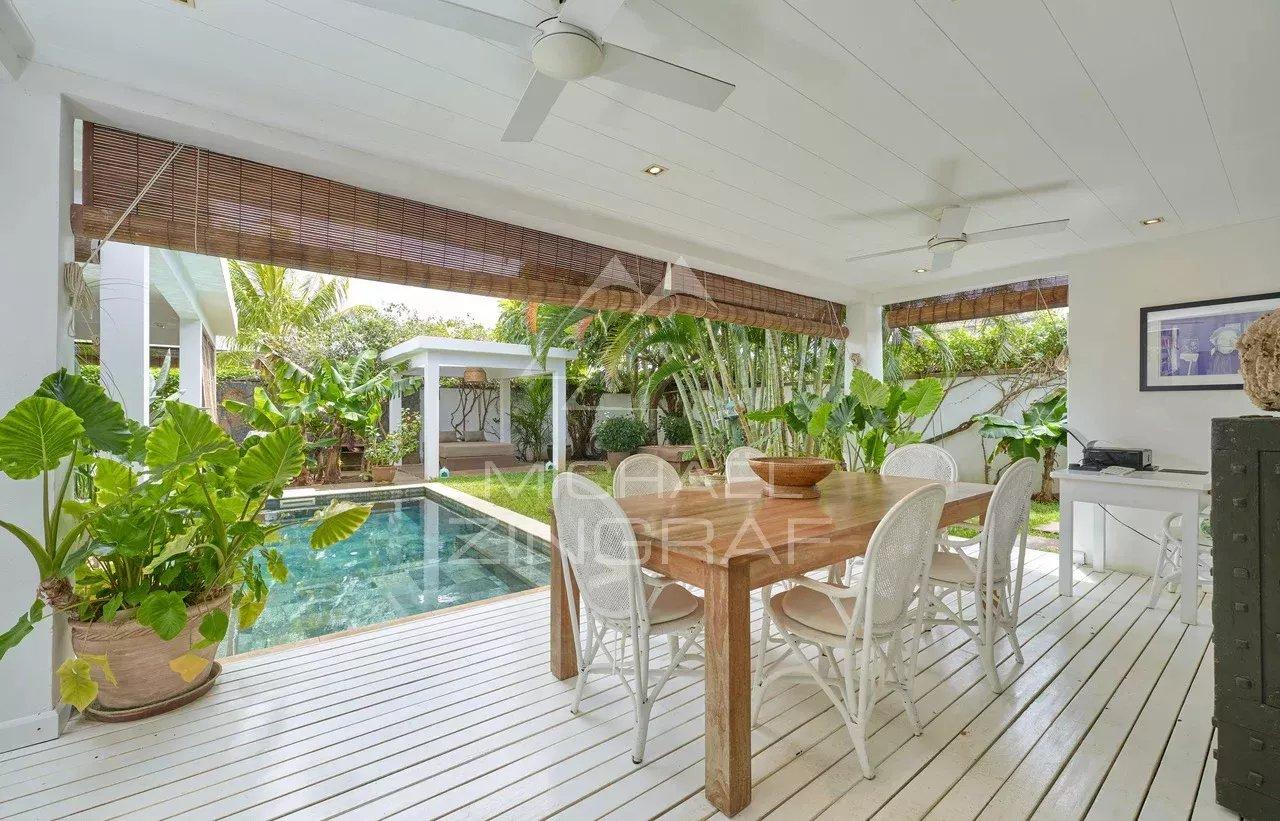 Ideally located in Grand Bay, just a stone’s throw from all amenities, this charming villa is nestled within a private and secure residence, offering comfort and peace of mind every day. Built on a 367 m² plot, it offers a living area of 115.64 m² and stands out with its contemporary design and beautiful outdoor spaces. The villa includes: 2 spacious bedrooms with en-suite bathrooms 1 office, which can be converted into a third smaller bedroom A bright living room with an open-plan kitchen A landscaped tropical garden, a true green haven A private swimming pool of 20.47 m², perfect for relaxation. A rare property in a sought-after area, combining modernity, privacy, and a prime location in Grand Baie.Request for information