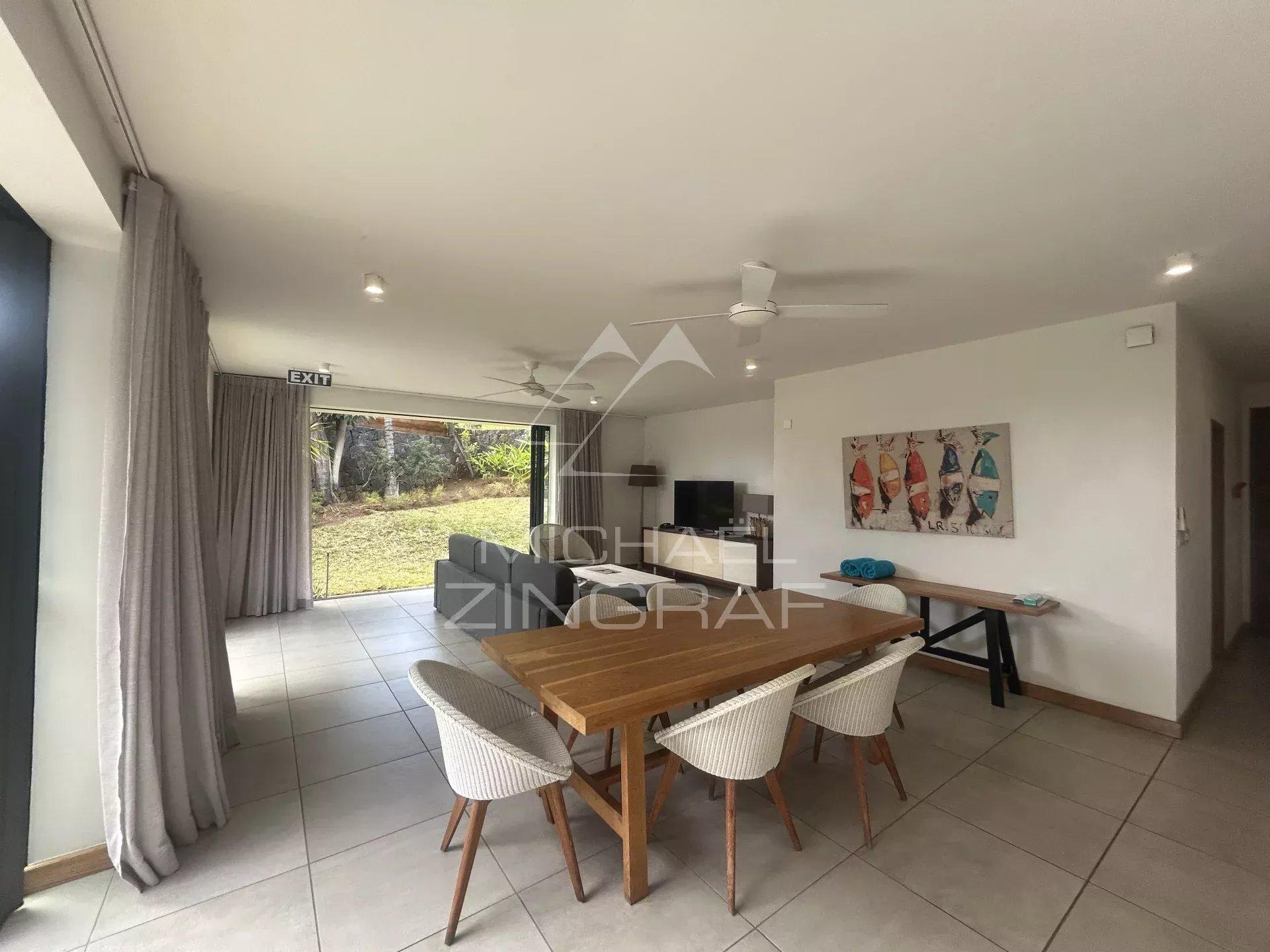Marguery Villas is a completed, delivered and operated resort, located 800 m. of the lagoon and resolutely turned towards the mountain of the turret. Corporated in a green setting in the heart of a 250 ha private residential area, Marguerry plantation, the Resort Marguery Villas benefits from an exceptional location. The heart of Marguery Villas Concierge service, fitness room, kids club, swimming pool, lounge bar and food corner for a chic snacking at any time, the club house is the essential place to enjoy all the services offered by the resort . The +: a villa catering service offered by the chef who works for local seasonal products for a refined and creative card in local colors. Close to the shops and the beach 50 meters from the resort is a Creole stream, tropical, open -air shopping center. You will find shops, cafes, restaurants, pharmacies, wine merchants, banks, etc. And every Wednesday the organic vegetable market! UNDER OF CHAUSSEE: Life style Spacious and bright living spaces. High-standing materials and equipment. Large openings on a resolutely tropical landscaped garden Ground floor: parental suite Parental suite opening on the swimming pool and dressing room, opening on private outdoor shower 1st floor: on the 1st floor, two bedrooms with 2 private shower rooms This villa combines a prime location, high-end amenities, and a heavenly living environment. It features a heated pool and a magnificent 40 m² outdoor gazebo, ideal for fully enjoying the tropical lifestyle.Request for information