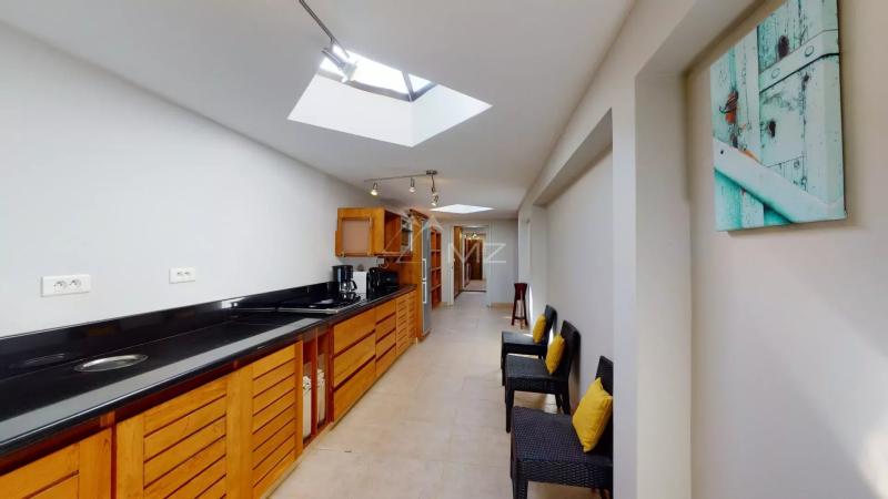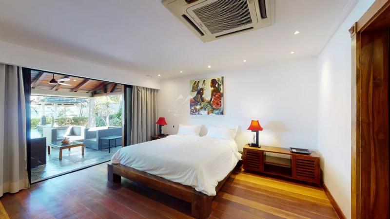 LA VILLA MATAHARI EST UN BIJOU POSÉ SUR LA SUBLIME PLAGE DE LA PRENEUSE A RIVIÈRE NOIRE PRESENTATION : Cette somptueuse villa de 3 chambres avec salle de bains avec son appartement indépendant en bord de mer est la quintessence du luxe pour vos prochaines vacances à l'île Maurice. Située sur la plage la plus vierge de la côte ouest, la Preneuse, cette villa d'architecte, entièrement climatisée, offre tout ce que vous recherchiez. Piscine privée à débordement avec vue sur le lagon, hammam, table de massage, 4 parkings couverts, 3 cuisines etc. Le tout donnant sur la magnifique vue sur la plage de sable blanc et le lagon turquoise de La Preneuse. La villa est entièrement climatisée et viabilisée Décoré avec des meubles design haut de gamme, des matériaux de qualité, tels que du bois de teck, du bois synthétique gravé, de la toile, des pierres à sculpter à la main et bien plus encore. Vous serez étonné par le niveau de détails qui font de cette villa un havre de paix unique et luxueux. Villa principale appartement annexe pour 8 personnes: Villa principale de 8 pièces, dont 3 chambres climatisées, 3 salles de bain, 4 toilettes, bureau avec lit d'appoint, cuisine indépendante, salle à manger, salon, terrasse, kiosque, piscine à débordement Son appartement annexe appelé "Guest House" se compose d'un accès dans le parking, d'un jardin privatif et intime, d'une varangue, d'un grand salon, d'une salle de bain, d'une grande chambre a l'étage sous charpente en bois avec un garde corps. Idéal pour un couple qui souhaite être à l'écart ou pour du personnelDemande d'information