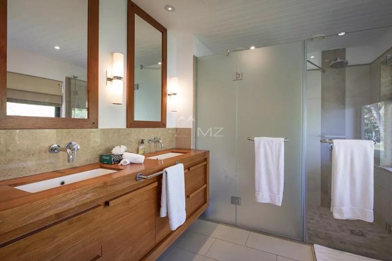 Offrant une vue magnifique sur le 18e fairway, face au lagon turquoise et à l’Ile aux Cerfs, cette villa de 500m2 est construite sur un terrain de 2 044m2 et présente une architecture traditionnelle mauricienne avec des toits en pente. Les pierres volcaniques et le bois de construction lui donnent beaucoup de caractère. Elle possède cinq chambres avec salles de bain attenantes et dressing, deux en rez-de-chaussée avec douches extérieures et deux à l'étage, ainsi qu’un studio en-suite idéal pour les invités, donnant sur le golf et le lagon. La propriété est également dotée d’un espace détente avec hamman et salle de repos, un grand kiosque extérieur adjacent à la piscine et s’ouvrant sur un des plus beaux panoramas d’Anahita, ainsi qu’une belle piscine à débordement pour des moments de détente absolue face au bleu turquoise de l’océan Indien. Cette villa est située dans le quartier Lunea, toute proche à pied de toutes les facilités qu’offre le domaine (restaurants, club house, spa piscine, plage et ponton de départ vers la plage exclusive d’Anahita sur l’île aux Cerfs). Bénéficiez de nombreux avantages en devenant propriétaire au sein du domaine : - La possibilité de mettre son bien à la location tout au long de l’année et de l’entretenir par le biais de la conciergerie. - Invitations à des événements exclusifs (tournois de golf, concerts, dîners…) - En devenant membre du owners Club, profitez des infrastructures du Resort ainsi que de nombreux avantages et remises dans et hors du domaine - Prestations d’un Chef à domicile pour vos réceptions privées, courses à domicile…Demande d'information