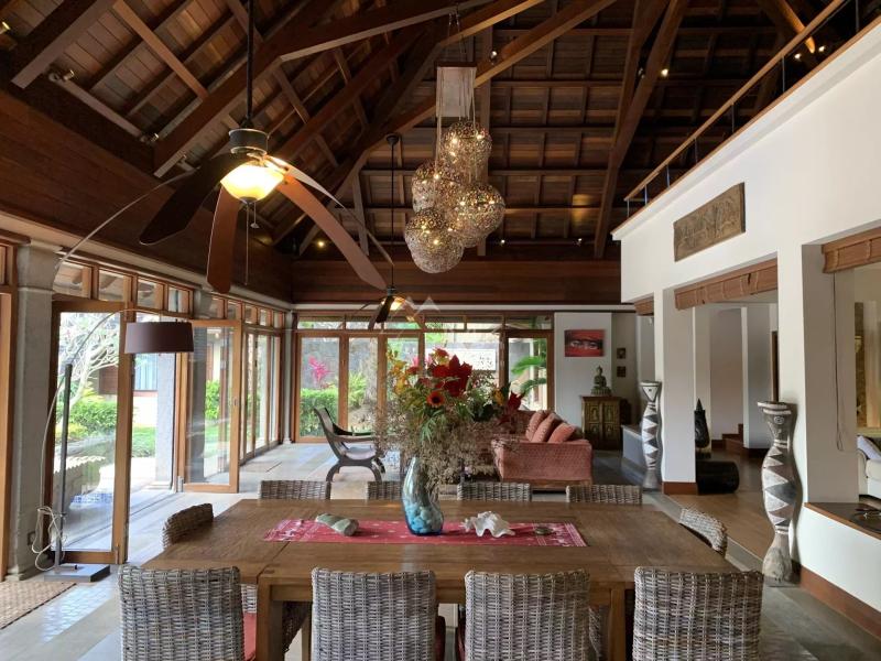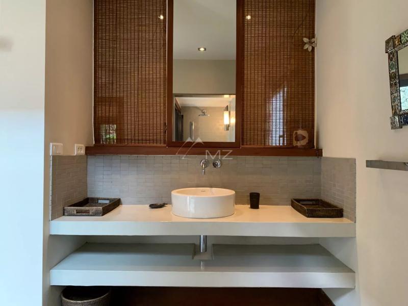 Somptueuse villa de 7 chambres sur 3 bâtiments dans l'esprit balinais à vendre Opportunité rare dans un quartier ultra prise: ce somptueux micro complexe d’une villa principale et de 3 dépendances, sur une surface habitable totale de 1450 m². Cette villa vous garantit calme et discretion au coeur du quartier le plus prise de grand Baie. Cette villa d’exception très chic est bâtie sur un terrain de 2500 m², sa rareté en fait toute sa beauté. Elle s’adresse à ceux qui aiment les matériaux nobles et authentiques. Tout est éveil aux souvenirs. Ce bien à couper le souffle raffiné est une occasion rare et unique. Vendu entièrement meublée, équipée, climatisée et très sécurisée. Récapitulatif des superficies du somptueux micro complexe : Superficie Habitable : 1450 m² Superficie du terrain : 2500 m² Descriptif du somptueux micro complexe : Villa principale 1 salon, 1 salon TV, 1 mezzanine « American club » avec un billard unique qui vient des USA, 2 salles à manger, 1 cuisine américaine, 1 bureau, 1 suite parentale avec salle de bain (douche italienne et baignoire chromaterapie) et 1 toilette indépendant et 1 dressing avec porte blindé qui sert de panic room, 1 toilette indépendant, 1 cellier, 1 arrière cuisine, 1 buanderie avec 1 cour. Première dépendance Dépendance « coin détente » comprenant 1 jacuzzi extérieur, 1 salle de massage, 1 salle de sport, 1 salle de bain avec toilette. Seconde dépendance Guest House avec terrasse couverte, au rez-de-chaussée, 1 kitchenette, 1 store de rangement, 1 chambre, 1 salon TV, 1 salle de bain, 1 toilette, 1 douche extérieure. A l’étage une seconde chambre avec salle de bain et toilette. Troisième dépendance Une dépendance avec 2 studios identiques, chacun équipé d’une chambre double avec douche italienne et toilette, 1 coin vasque et coin dressing. Quatrième dépendance Une dépendance pour le personnel comprenant 2 chambres, 1 salle de bain, 1 toilette, 1 cuisine, 1 salon / salle à manger. Extérieur Un kiosque. Deux piscines. Une piscine détente chauffée avec un Bar dans l’eau et coin pour déjeuner et les loisirs. Également une piscine à débordement (Lap Pool) de 18 mètres de long sur 3 mètres de large. Entrée de service pour le personnel. Un vestiaire pour le personnel avec une douche, une toilette et également une machine à laver. Grand parking avec un abri pour 2 voitures. Partie technique du somptueux micro complexe : – 1 réservoir à eau de 45 m3 – 1 piscine chauffée (celle devant le kiosque) – Locale technique piscines – Éclairage dans le jardin commandé à distance pour les couleurs d’ambiance – 1 store bricolage / rangement – Chaudière à gaz très haute pression – Locale poubelle sécurisée, carrelée et propre – Gaine technique tout autour de la maison (aucun passage sous dalle) – Système de drainage en cas de grosse pluie relié au tout-à-l’égout – Entièrement climatisée – Sonorisation de marque Boss à l’intérieur et à l’extérieur. – Local avec générateur 90 KVA (Caterpillar) – Mur de clôture tout autour de la propriété en pierre de 2.80 mètres de haut, sécurisé et caméra – Portail électrique – Tout-à-l’égout – Volet électrique de marque SHUKO et volet en bois à la française – Fibre optique partoutDemande d'information