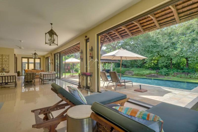 Villa tropicale d’exception au cœur du domaine Tamarina Golf Estate & Beach Club Nichée le long des rives paisibles de la rivière, cette villa de style résolument tropical séduit par son atmosphère harmonieuse entre nature et élégance. De grandes baies vitrées inondent les espaces de lumière et s’ouvrent sur une vaste véranda couverte offrant une vue imprenable sur les jardins luxuriants. Conçue pour allier confort et raffinement, la villa offre des espaces généreux, subtilement aménagés et entièrement équipés pour un art de vivre sans compromis. Idéalement située au sein du prestigieux Tamarina Golf Estate & Beach Club, elle bénéficie d’un environnement exclusif et sécurisé. L’acquisition de cette propriété vous donne accès à une adhésion au club de golf et vous rend éligible à un permis de résidence permanent à l’île Maurice. Disposition de la villa principale 4 chambres en suite climatisées, chacune avec un accès privé au jardin, Un spacieux séjour comprenant salon et salle à manger, Une cuisine indépendante, avec arrière-cuisine et buanderie séparée, Une vaste véranda couverte, parfaite pour recevoir et profiter de la douceur mauricienne, Un double garage fermé. La villa est vendue entièrement meublée et comprend également une voiturette de golf, incluse dans le prix. Une dépendance indépendante complète la propriété, comprenant une chambre climatisée avec salle de bain privative — idéale pour accueillir des invités ou du personnel. Le parcours de golf Le Tamarina Golf & Beach Estate abrite l’un des plus beaux parcours de golf de l’île Maurice. Ce domaine unique de 206 hectares, sculpté entre montagne et océan sur la côte ouest, fut le premier domaine résidentiel de golf de l’île, accueillant aussi bien résidents mauriciens qu’internationaux. Imaginé par Rodney Wright, célèbre architecte de parcours installé à Singapour, ce spectaculaire 18 trous Par 72 s’étend sur 6 780 mètres. Son charme réside dans le contraste entre la nature sauvage de son environnement et la finesse de ses greens et fairways. Chaque trou offre cinq départs différents, permettant aux golfeurs de tous niveaux d’en apprécier pleinement le tracé. Le trou n°13, un Par 3 descendant vers l’océan, et le n°18, se terminant face à une falaise rocheuse, offrent un final d’une beauté saisissante. Le Beach Club Surplombant la plage emblématique de Tamarin, le Tamarina Beach Club incarne l’art de vivre tropical. Entre détente au bord de l’eau, déjeuner ensoleillé ou dîner raffiné au coucher du soleil, le Beach Club offre un cadre exclusif et une atmosphère conviviale unique sur l’île.Demande d'information
