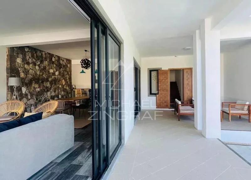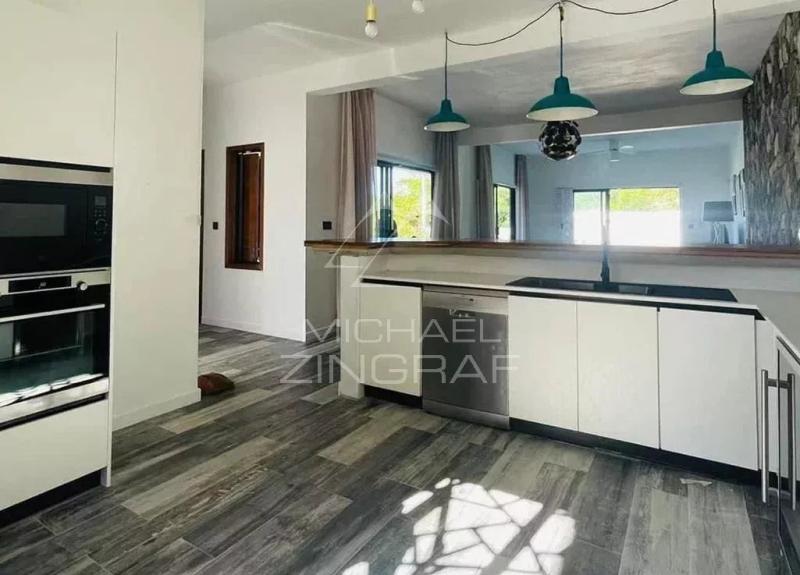 Maison contemporaine à étage située dans un quartier hautement résidentiel de Calodyne. La villa comprend: Rez-de-chaussée: Un grand coin salon et salle à manger, une cuisine américaine avec vue sur la piscine et le jardin. Une buanderie, 1 wc. Une chambre ensuite avec dressing donnant sur la terrasse et le jardin. A l'étage: 2 chambres à coucher avec salles de bains attenantes & Dressing. Une salle de billard. La villa est équipée de meubles de haute qualité. La piscine, entretien jardin, pest control et la sécurité sont inclus dans le prix de la location.Demande d'information
