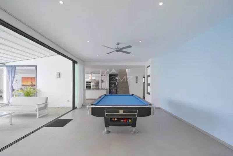Découvrez cette somptueuse villa de style californien, située à seulement 3 minutes de la Croisette et du centre de Grand Baie. Offrant un cadre de vie exceptionnel, cette demeure allie luxe et confort dans un environnement paisible. Caractéristiques : Surface Habitable : 420 m² Chambres : 4 chambres élégantes, chacune avec sa propre salle de bain dont 2 avec baignoires pour des moments de détente absolue. Un Bureau Une cuisine moderne équipée haut de gamme équipée d'un îlot central et d'un espace bar, ouverte sur le séjour pour des moments conviviaux en famille ou entre amis. Une terrasse spacieuse donnant sur une magnifique piscine et un jardin paysager, parfaits pour profiter des journées ensoleillées. De grandes ouvertures inondent la villa de lumière naturelle, créant une atmosphère chaleureuse et accueillante. La villa est vendue entièrement meublée et équipée avec des meubles et des équipements de qualité supérieure. Terrain : Une superficie généreuse de 1 098 m² offrant espace et intimité. Un double garage pour abriter vos véhicules en toute sécurité. *Cette villa est accessible aux étrangers. Le prix de vente inclut tous les meubles et équipements. Ne manquez pas cette occasion unique d'acquérir une villa d'exception à Grand Baie, où le luxe et le confort se rencontrent.Demande d'information