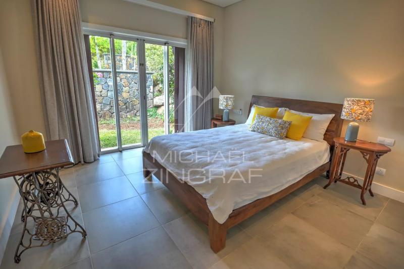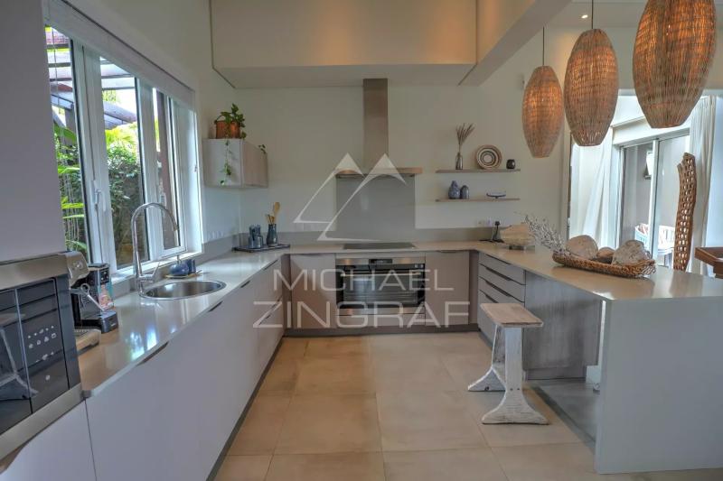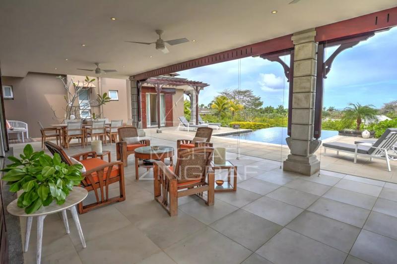 Nichée sur les hauteurs d'Heritage Villas Valriche, cette villa de 418 m² se distingue par son architecture moderne qui conserve un caractère authentiquement tropical. Pensée pour le confort absolu, elle propose des espaces de vie spacieux, de plain-pied, sans aucun escalier. La varangue, véritable havre de détente, accueille un coin bar, tandis que la plage de la piscine s'étend jusqu'au gazebo, invitant à une vie en extérieur incomparable. La cuisine américaine, entièrement équipée, se connecte harmonieusement à une spacieuse arrière-cuisine, parfaite pour répondre à tous vos besoins. La vue imprenable sur l'Océan est un spectacle quotidien, sublimé par une localisation idéale où l'intimité est préservée, sans voisins visibles à l'horizon. Construite sur un terrain de 1750 m², la villa bénéficie en plus d'espaces de jardin supplémentaires en jouissance exclusive, offrant un cadre verdoyant et serein. Les quatre chambres en suite sont de véritables sanctuaires de confort, avec une chambre principale qui s'ouvre sur une douche extérieure et une baignoire, pour un moment de détente en pleine nature. Chaque chambre est équipée d'un système de climatisation centralisé, assurant un confort optimal en toute saison. La villa comprend également un double garage et des espaces de parking supplémentaires. Conçue pour allier modernité et durabilité, elle est équipée d'un système de climatisation centralisé pour les chambres, d'une pompe à chaleur pour l'eau chaude, et de lampes de jardin solaires, garantissant une empreinte écologique réduite. Le jardin paysager et le potager ajoutent une touche de tranquillité à cette résidence d'exception. Un bien rare à Valriche de part sa modernité et sa lumonisté, si vous recherchez à achater sur le domaine une visite s'impose. En devenant propriétaire de cette villa, vous accéderez à un éventail exclusif de facilités qu'offre le domaine d'Heritage Villas Valriche : Un club de plage privé avec 35% de remise sur les consommations. Accès illimité aux deux hôtels 5 étoiles du domaine : Heritage Awali et Heritage Le Telfair. Deux parcours de golf de 18 trous de renommée internationale. Un centre de sport avec une piscine de 25m, une salle de gym, un espace yoga, et des terrains de tennis. Le domaine propose également un terrain de paddle tennis, plusieurs spas, des centres nautiques, et une réserve naturelle de 1500 hectares. 16 restaurants, offrant une diversité culinaire sans égale. Une vie communautaire inégalée, dans un cadre verdoyant et luxueux. Cette villa représente bien plus qu’une résidence ; elle est une véritable déclaration de raffinement et de qualité de vie. Ne manquez pas l'occasion de découvrir ce joyau unique à Heritage Villas Valriche.Demande d'information