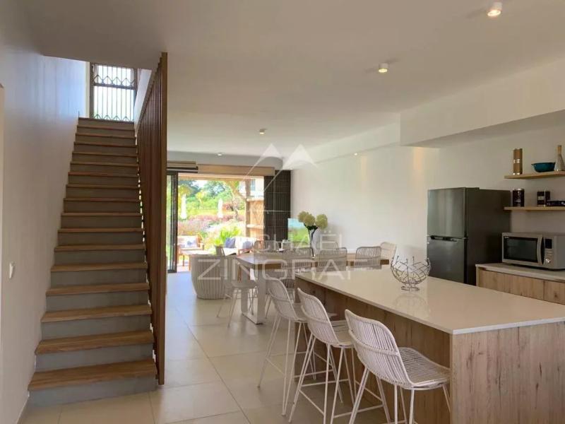 Idéalement située au bord du barachois dans une résidence pieds dans l’eau à Calodyne, cette villa meublée et équipée offre une douceur de vivre rare. Accès direct au lagon, balades en paddle ou canoë, et piscine commune avec vue mer font de cette location un petit paradis au nord de l’île. ESPACES DE VIE LUMINEUX ET OUVERTS SUR L'EXTERIEUR: Salon spacieux et salle à manger avec baies vitrées Cuisine américaine équipée (four, réfrigérateur, etc.) Varangue conviviale et jardin arboré de plantes tropicales Piscine privée et terrasse ensoleillée AGENCEMENT NUIT CONFORTABLE ET FONCTIONNEL 4 chambres au total Suite parentale au rez-de-chaussée avec dressing, salle de bain, toilettes et vue piscine À l’étage : 2 chambres avec rangements, dont une avec balcon vue lagon 1 salle de bain indépendante avec toilettes 1 chambre en suite à l’étage avec balcon et vue lagon Buanderie + accès au toit-terrasse UN CADRE TROPICAL ET SECURISE Résidence calme et sécurisée Piscine commune avec vue barachois Accès direct au lagon pour activités nautiques Entretien piscine et jardin inclusDemande d'information