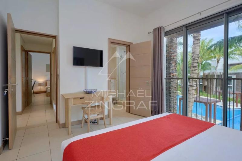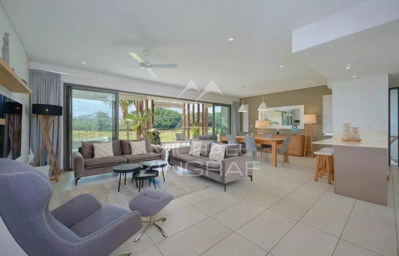 Situé au sein du prestigieux domaine de Mont Choisy, à proximité immédiate de Grand Baie, cet élégant appartement offre un cadre de vie unique entre nature, confort et raffinement. Caractéristiques principales : Superficie intérieure : 127 m² Grande terrasse de 40 m² avec vue dégagée sur le golf, sans vis-à-vis 2 chambres ensuite avec salles de bain privatives Cuisine moderne, appartement vendu meublé et équipé Accès privilégié au golf Store + 2 places de parking couvertes Situé au 1er étage avec ascenseur Atouts de la résidence : Grande piscine commune Sécurité 24/7 Générateur Environnement calme et verdoyant Proximité des plages et des commodités du nord Un appartement au style contemporain, idéal pour un investissement ou une résidence principale, accessible aux étrangers.Demande d'information
