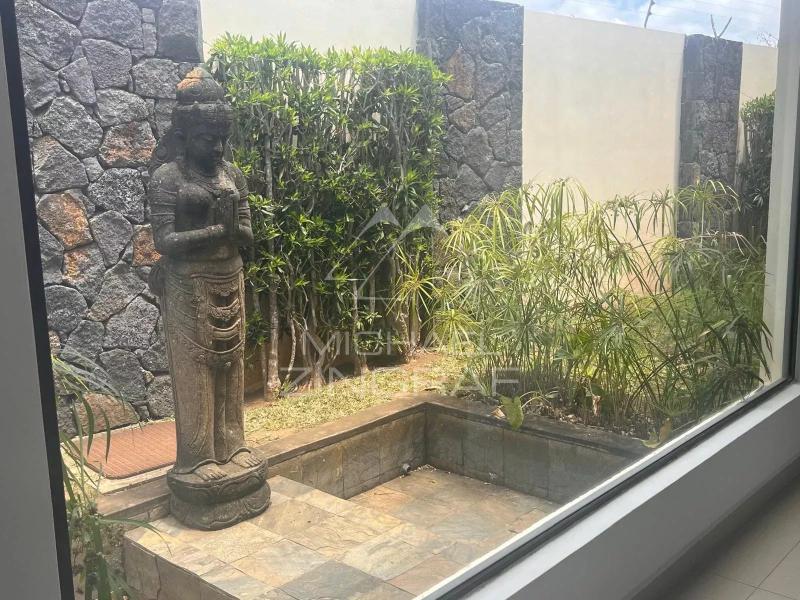 Située dans une résidence sécurisée à proximité immédiate des commodités, cette superbe villa offre un cadre de vie confortable et pratique au cœur du nord de l’île. Caractéristiques principales : Terrain de 1 175 m² Surface habitable : 410 m² 4 chambres à coucher, chacune avec salle de bain attenante Espace TV et mezzanine Piscine privée et jardin arboré et clôturé Garage Animaux acceptés Entretien du jardin et de la piscine inclus Un lieu idéal pour profiter du calme, du confort et de la proximité de Grand Baie, tout en vivant dans un environnement sécurisé et verdoyant.Demande d'information
